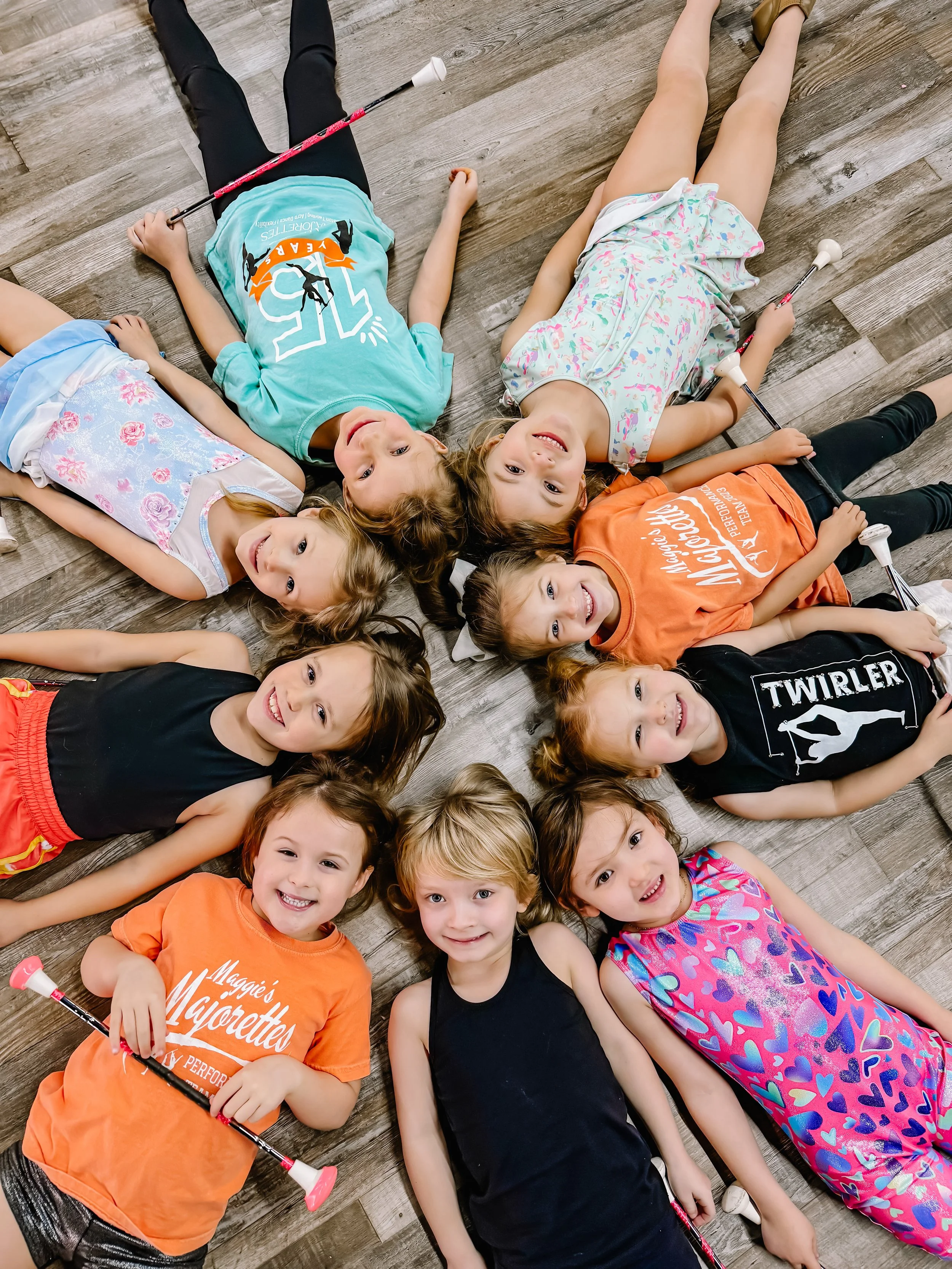 Maggie’s Majorettes is a premiere baton twirling program, located in West Tennessee. Our program was founded in 2007 by Maggie Belew Ricketts, former state/regional/national champion + University of Tennessee Head Majorette! We offer classes in baton twirling, flexibility/technique, and acrobatics. Our program focuses on developing self-confidence, flexibility, friendships, and technical ability in our students! Classes begin for students at age 3.